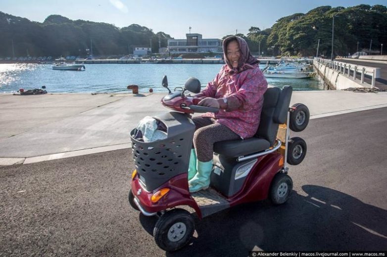 4. Бодрая японская бабушка — первая, кто встретилась мне на острове. Почты нет, жителям нужно забирать посылки самостоятельно. А где же коты? Только улыбка, никакого английского.