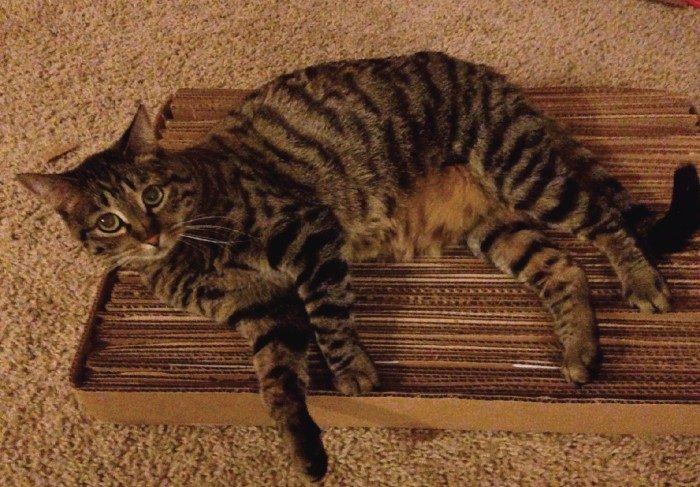 Первый вариант очень неудобен для хозяев: придется постоянно ходить с веником и совком. Результатом кошачьей деятельности будут картонные хлопья от картонной конструкции, раскиданные вокруг и разнесенные по всей квартире (уже tested однако)