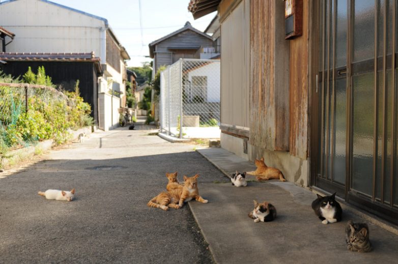 В Японии есть два острова: Тасиро и Аосима, на обоих из которых ОЧЕНЬ много кошек: население кошек там многократно превышает население людей. А на этом фото — ни один из этих островов. Один из основных островов Японии, обычный город, с самым обычным количеством кошек.