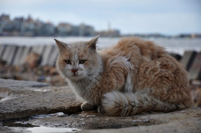 Кот с набережной города Александрия, Египет. Возможно, это далёкий потомок египетской богини Бастет — дочкой бога солнца Ра, женщины с головой кошки. Кстати, в древнем Египте убийство кошки каралось смертной казнью, а после смерти многие египтяне мумифицировали своих домашних питомцев.