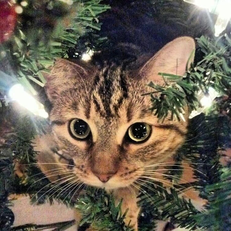 Некоторые кошки настолько мило выглядят на ёлках, что это просто невыносимо