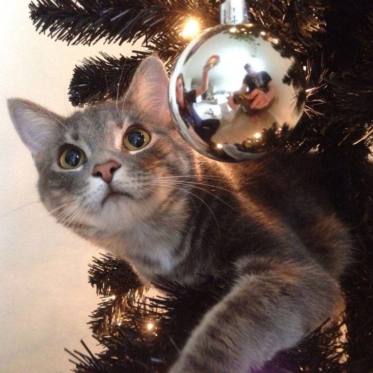 Ни один Новый год и Рождество не обходится без историй о том, как тот или иной кот уронил елку, разбил ёлочные шары или разорвал мишуру.