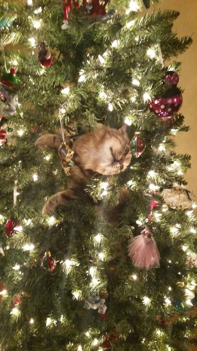 Кот забрался на ёлку, и его хозяин сделал идеальное фото для рождественских открыток