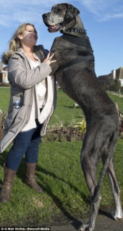 Четырехлетний пес живет со своей хозяйкой, некогда гламурной моделью Клэр Стоунман в Лей-он-Си, Эссекс. Этот датский дог — рекордсмен Гинесса, он весит 14,5 стоунов (~92 кг). Содержит эту собачку мисс Стоунман совместно со своей сестрой, и в год они тратят более £ 12,500.