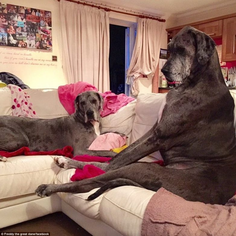 Этот пес высотой 7ft 6in (2,28 м), когда он встает на задние лапы. Одного взгляда на него достаточно, чтобы понять — да, просто огромный зверь! Владелицы Фредди, Клэр Стоунман и ее сестра Флёр, из Ли-он-Си (Эссекс), совершенно преданы этому уникальному созданию. Он установил рекорд Гиннесса — это самая большая собака в мире.