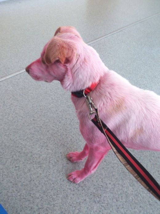 В Ижевске нашли собаку, которую неизвестные покрасили в розовый цвет. Сообщение о том, что по городу бегает собака розового цвета появилось в одной из групп в социальной сети, после чего ее начали искать.