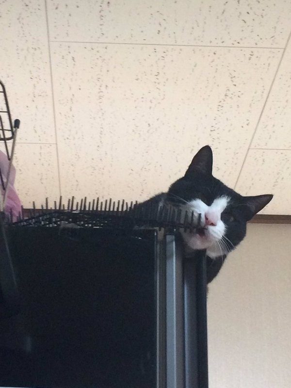 В соцсетях появилось множество фотографий, доказывающих, что коты больше не боятся шипов и преспокойно забираются туда, куда раньше боялись.