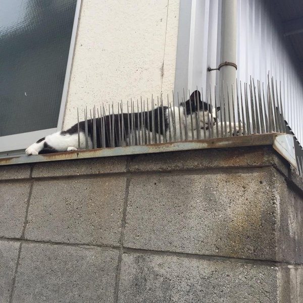 Как пишет Bored Panda, дешёвые пластиковые приспособления с шипами ставили туда, где люди не хотели видеть котов — подоконники, боксы кондиционеров, заборы, внутренние дворики и т. д. Их также могли установить и дома, чтобы отпугнуть котов от какой-либо мебели или поверхностей. И это работало на протяжении многих лет — до недавнего времени.