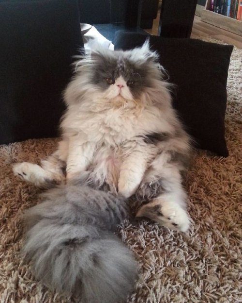 Коту регулярно приходится подстригать шерсть (проблема, с которой сталкиваются длинношерстные кошки и их владельцы) и, надо признаться, он выглядит довольно раздражённым, не правда ли? Вам он нравится каким — с длинной шерстью или с короткой?