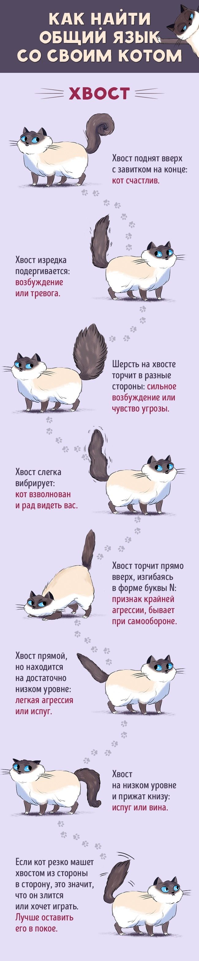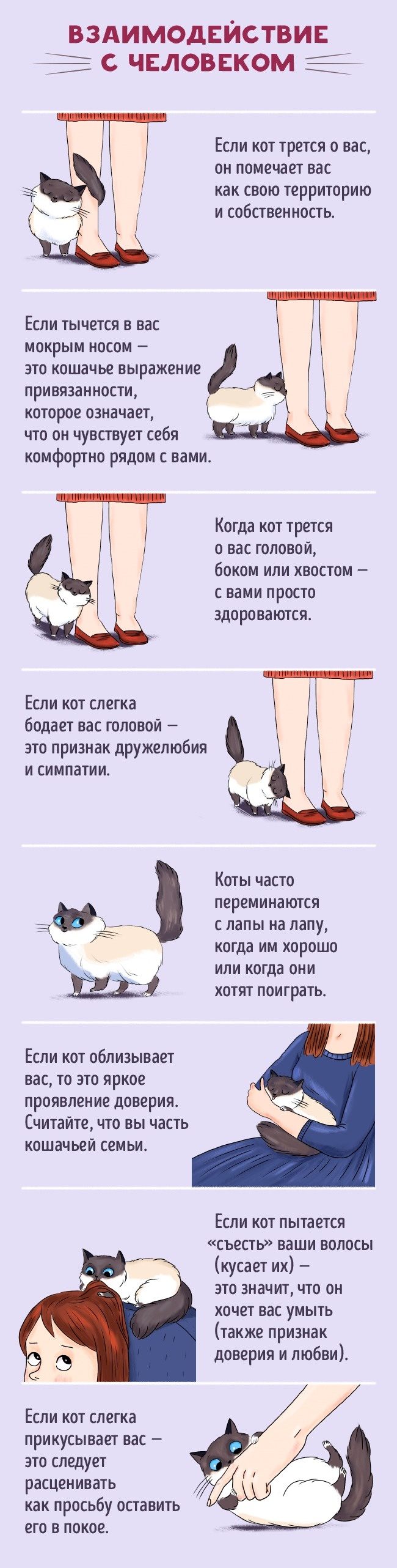 Все знают, что коты — самые нелогичные и непредсказуемые домашние животные. Попробуй пойми, что творится в голове у этой милой нахальной морды. Однако у кошек есть свой язык, выучив который вы сможете лучше понимать друг друга.
