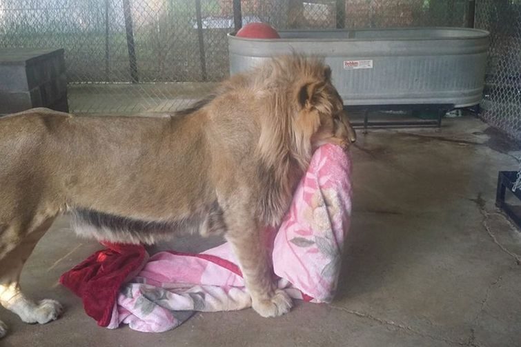 «Предыдущие владельцы приобрели его незаконно и содержали в качестве домашнего животного для своих маленьких детей. Дети захотели Симбу после просмотра мультфильма «Король лев» и семья решила, что сможет содержать льва, но они естественно ошибались и когда с животным начались проблемы, решили отдать его зоозащитникам. Конечно, мы были счастливы забрать его», — сказала директор центра Анжела Калвер