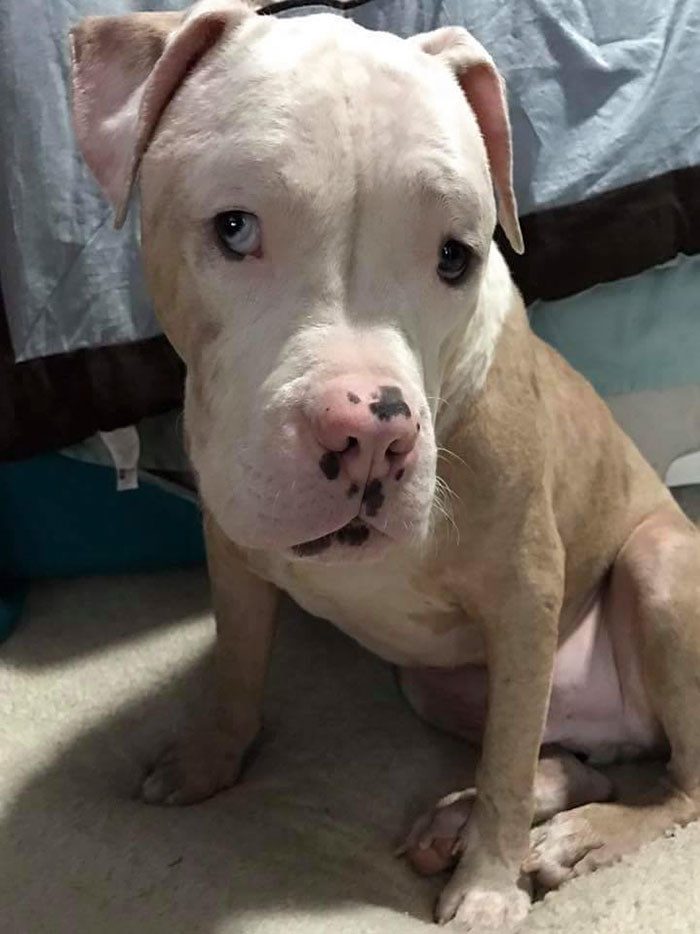Очаровательному псу по имени Стингер, метису пит-буля, очень не повезло — он глухой от рождения, и его сильно покусали пчелы.