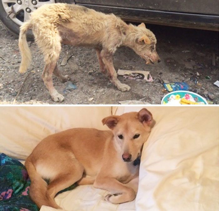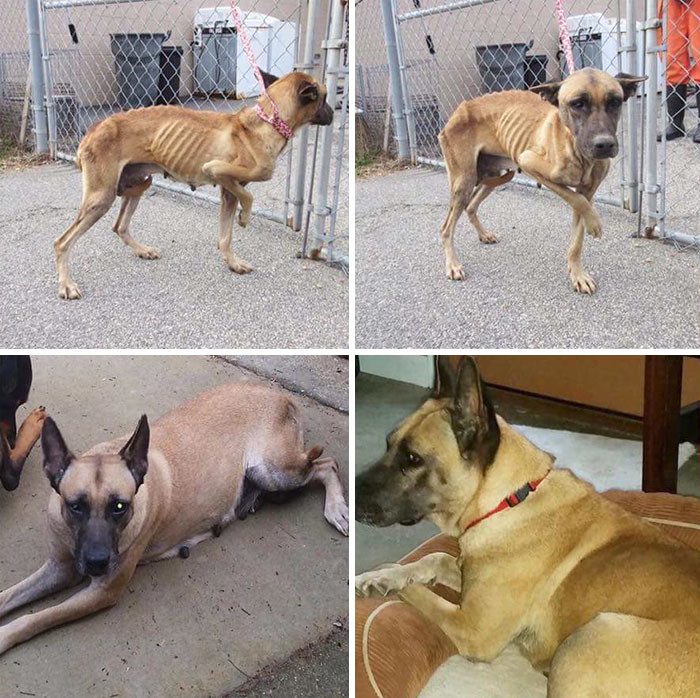 Эту истощенную собаку подобрали на улице и вылечили. Через три месяца ее было не узнать!