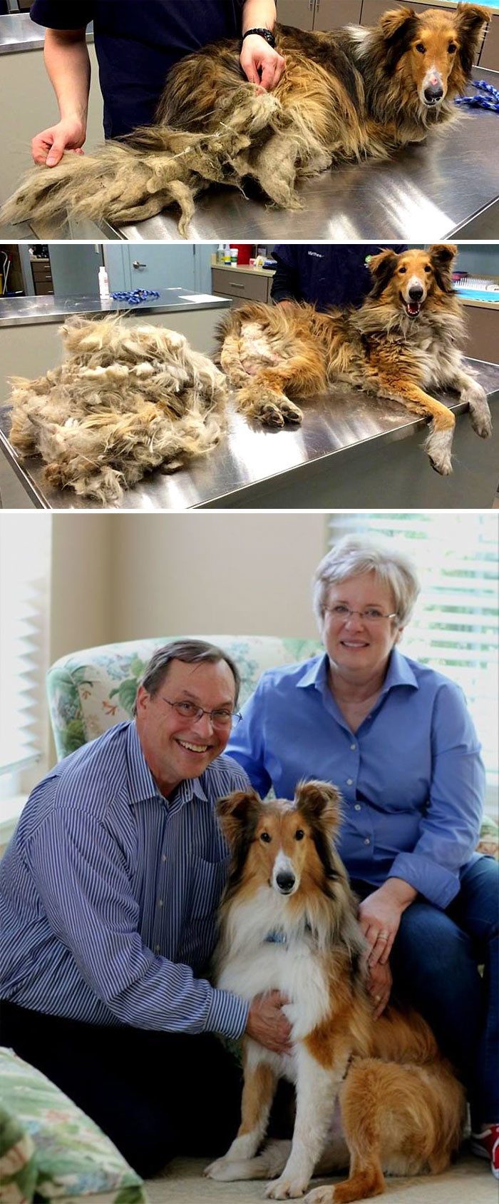 Этого беднягу подобрали на улицах Монреаля. Из-за спутанной грязной шерсти невозможно было даже опознать в нем собаку! Но теперь, чистый и подстриженный, он выглядит великолепно!