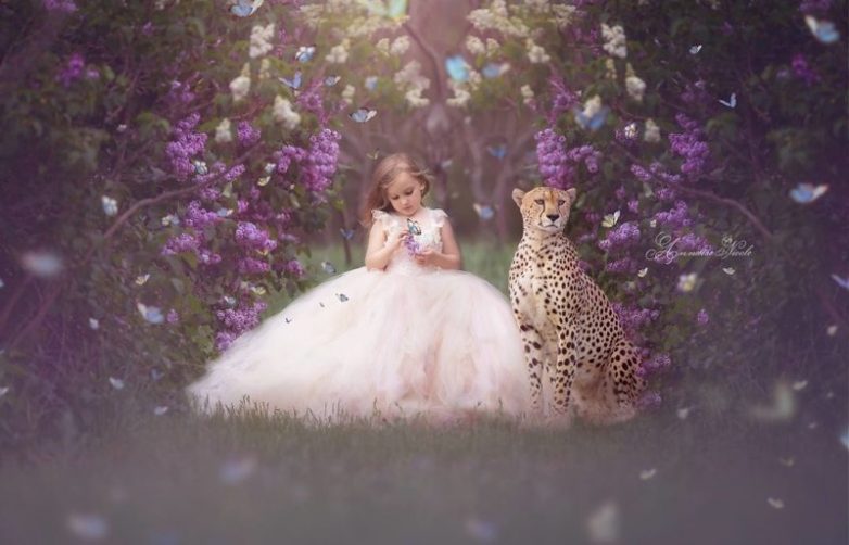 Животные есть на большинстве моих фото — такова форма моего искусства. Где-то есть любимые домашние животные ребенка; я сосредоточена на создании магии через воображение и мечты ребенка.» Это восхитительно! Как это сделано, неважно — кажется, что все реально. Посмотрите эти потрясающие детские портреты.