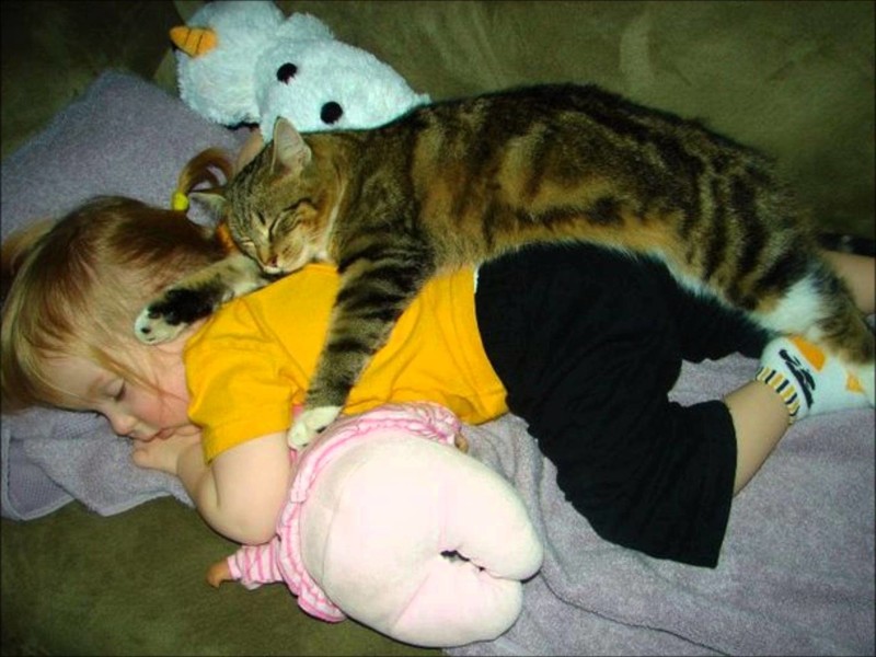 Кошки — лучшие няньки, они намного чувствительнее собак, с кошкой ребёнок в совершенной безопасности, имею массу примеров. Котярушки молодцы, подборка отличная!!!