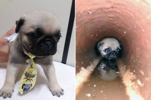 Время имело важное значение в деле спасения 6-месячного щенка мопса. Животное застряло в трубе на строительной площадке в муниципалитете Гуаира (Guaíra), Бразилия. Владелица мопса, ветеринарный врач Кавахиса Ёсиока (Kawahisa Yoshioka), несколько часов подряд пыталась вызволить его из трубы, подзывая к себе, но когда малыш, издав пронзительный визг, остановился, она испугалась самого худшего и позвонила в муниципальную гражданскую гвардию Сан-Паулу.