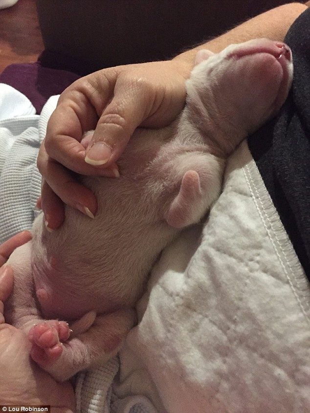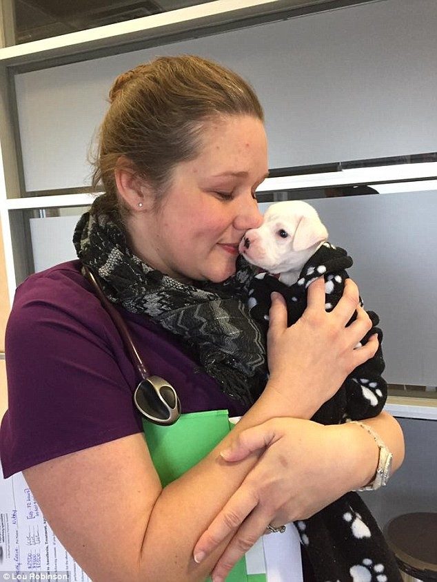Ветеринары хотели усыпить щенка без передник лап, но, к счастью, вмешались Лу Робинсон и ее муж