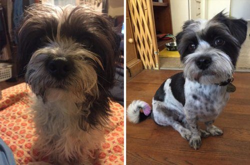 Милые пёсики до и после стрижки