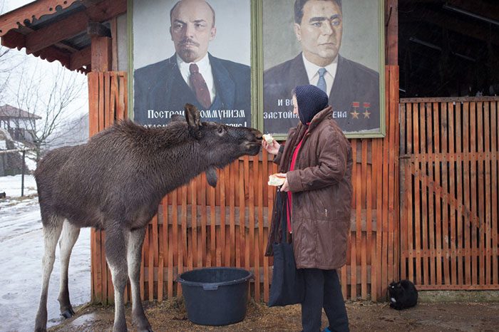 Лосенок вырос на ферме в небольшой деревне Минской области, и сейчас его вполне можно считать домашним животным – Гриша чувствует себя совершенно комфортно среди людей и не стремится в лес.