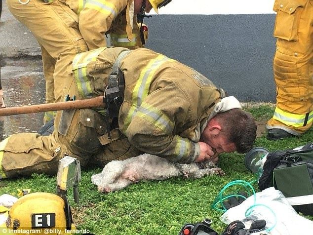 Пожарный реанимировал маленькую собачку