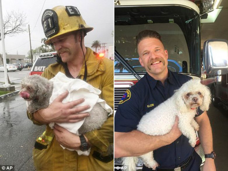 Пожарный Эндрю Кляйн заполз в горящую квартиру на четвереньках и нашел пса в дальней спальне.