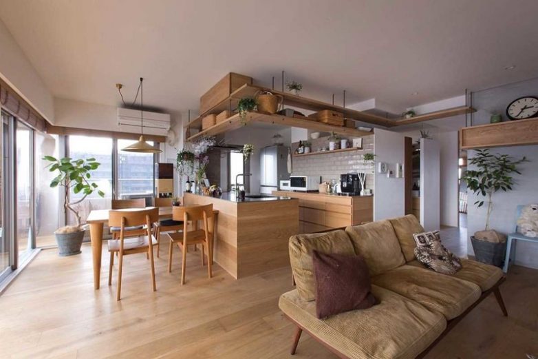 Квартира Nionohama Apartment наполнена полками и шкафчиками, висящими на стенах, которые позволяют кошке легко прыгать и передвигаться по комнате на высоте, что заставляет её ощутить себя львом, осматривающим свою территорию.