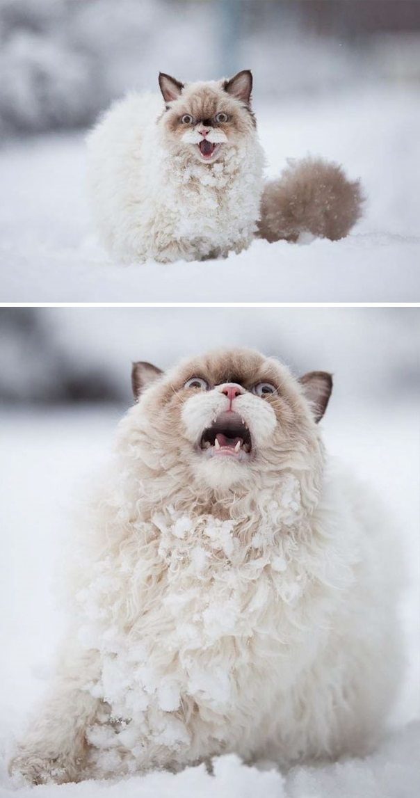 «Кот моего соседа по комнате впервые увидел снег, падающий за окном»