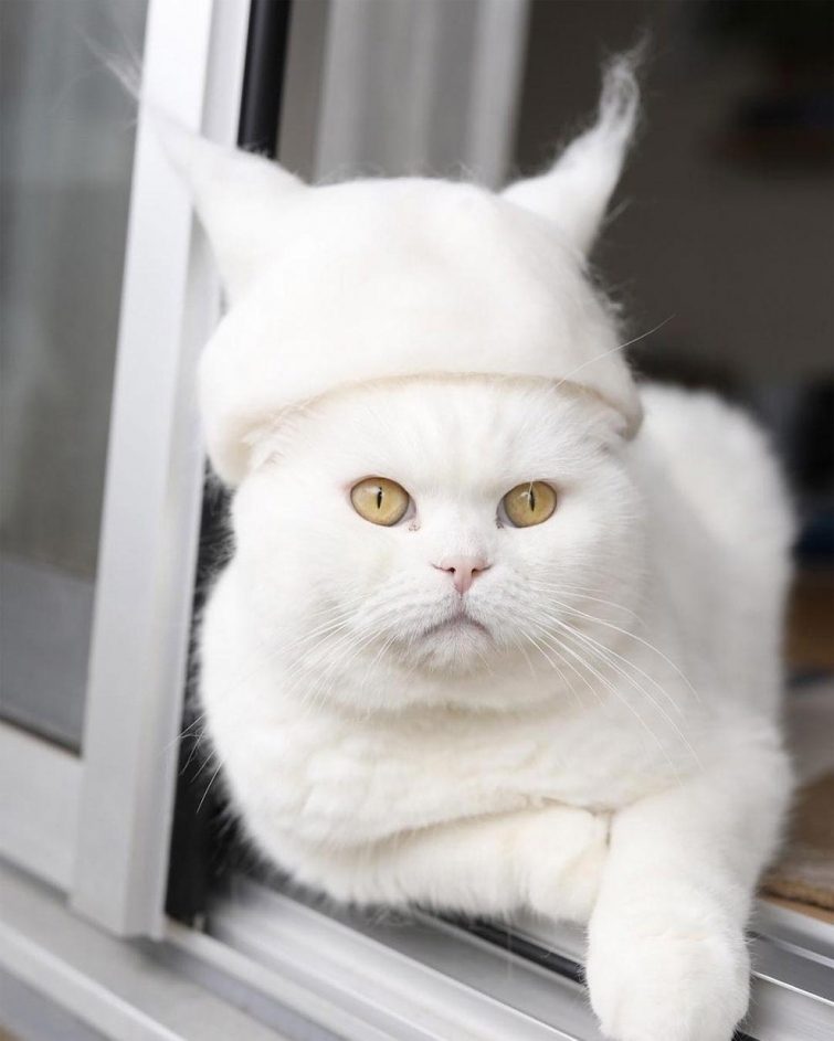 Хозяин — идиот! Лучше бы себе шапку на голову надел, а котикам не нужна никакая шляпа, это все-таки животное!!!