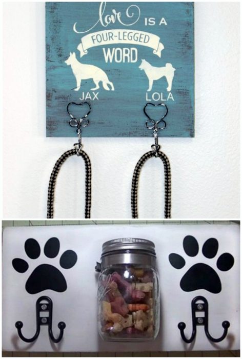 Чтобы собачьи поводки не путались и всегда были под рукой, оборудуйте для них специальные крючки. Их можно повесить у двери в прихожей или в кладовке, там же можно разместить крючок для собачьего полотенца и контейнер с лакомствами.
