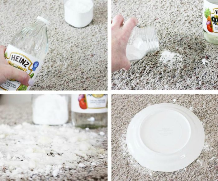 Случаются ситуации, когда любимец по каким-то причинам не смог дождаться прогулки и справил малую нужду прямо на ковер или на мягкую мебель. Устранить следы этой неприятности помогут простые и весьма доступные средства такие, как сода и уксус. Сначала нужно развести уксус в воде в пропорциях 1:4, пропитать полученной жидкостью загрязненный участок, а через 20-30 минут насухо вытереть. После этого поврежденный участок нужно засыпать содой и накрыть тарелкой или крышкой. После, можно растереть соду с помощью грубой щетки и собрать ее остатки пылесосом.