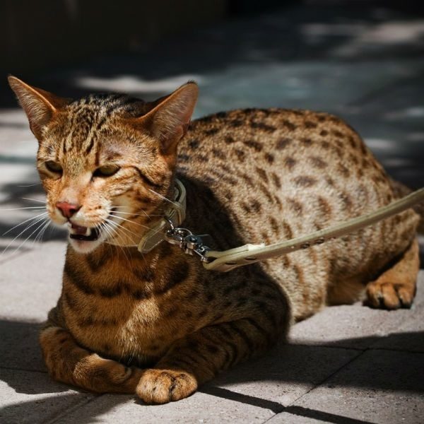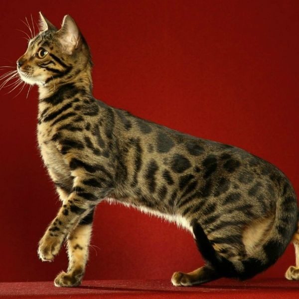 Вес взрослой особи достигает 12-14 кг. Тело немного непропорциональное, уши зауженные на кончиках, глаза золотого или зеленого цвета. Короткая шерсть может иметь 4 вида окраса: оранжево-золотой с пятнами, гипоаллергенный, снежный и леопардовый. Эти кошки коммуникабельны и уравновешены, любят активные игры и прогулки на улице.