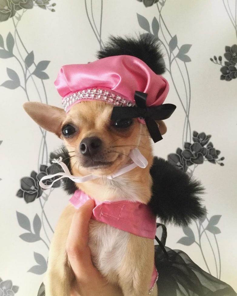 У чихуахуа есть свой аккаунт в Instagram. За её модными образами следят более 17 тысяч человек.
