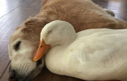Встречайте золотистого ретривера Барклая (Barclay) и его лучшего друга, 4-летнего селезня пекинской породы по кличке Руди (Rudy), которые могут научить дружбе многих!