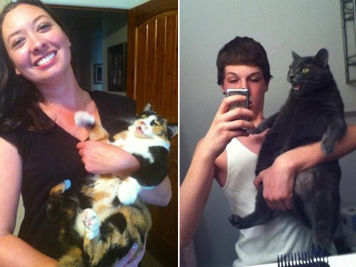 Как известно, кошки всегда делают только то, что хочется им! Поэтому, когда хозяева собираются сделать с ними селфи, всё нежелание этих привередливых животных видно невооружённым взглядом! Вот! Взгляните!