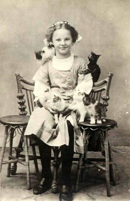 3. Юная дрессировщица в окружение своей мяукающей компании