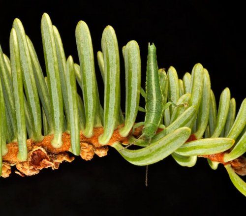 Паук Dolophones conifera, свернувшийся вокруг ветки