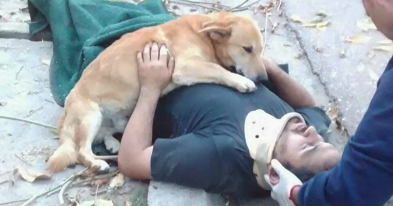 Пёс не оставил своего хозяина в беде