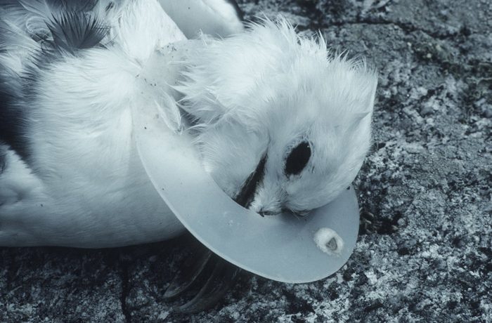 Когда животные или рыбы видят пластик, плавающий в толще воды, они иногда принимают его за еду, и съедают. Ни один желудок не способен переварить подобную пищу, и потому, когда подобного мусора внутри живота уже слишком много, живое существо начинает медленно и болезненно умирать. Брошенные рыбачьи сети также становятся ловушками для многих водных жителей. Нередко выбраться из такой ловушки животному просто не под силу, и оно либо страдает всю свою жизнь, либо вскорости просто умирает.