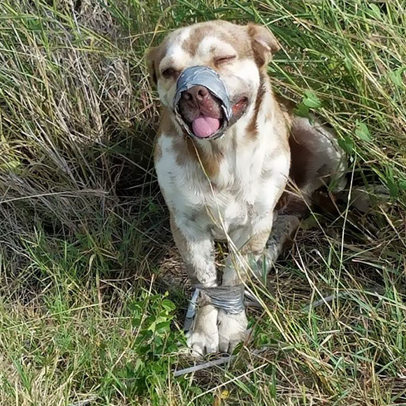 Лапы также были связаны прочным кабелем. Кто-то оставил пса умирать