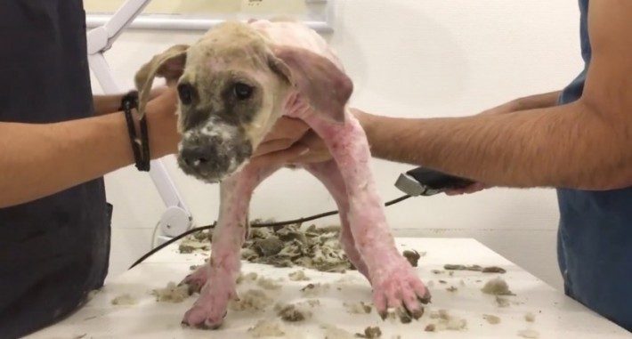 Щенка полностью побрили и он снова мог полноценно двигаться. Целый день после процедуры малыш был в стрессе, его кожа была красной и воспаленной.