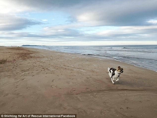 После нескольких месяцев лечения песик обрел новую семью и живет в Испании. На фото ниже счастливый Паскаль бегает по пляжу, хотя совсем недавно не мог даже пошевелиться от сковавшей движения корки из клея.