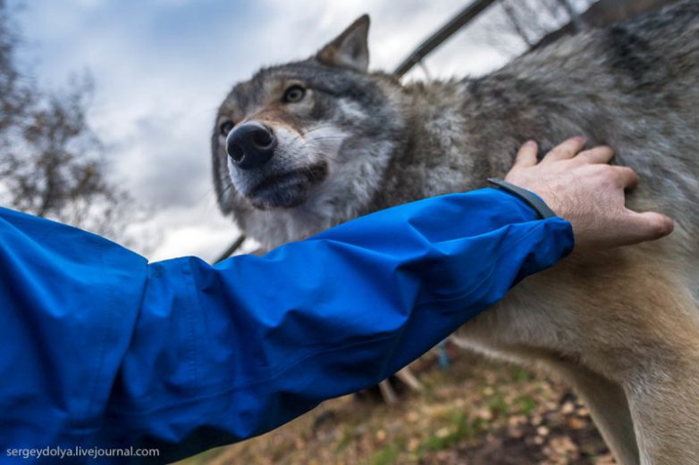 Волки целуются не на потеху гостям — у них, таким образом, происходит знакомство. Первое, на что обращаешь внимание — от волков совершенно нет никакого запаха…