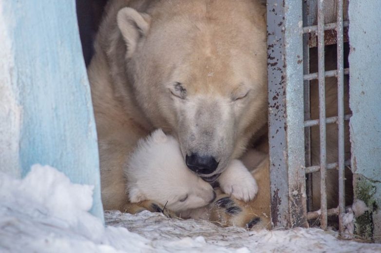 А в начале декабря у них появился медвежонок. В неволе белые медведи размножаются редко, в Новосибирском зоопарке в последний раз это случилось 42 года назад. Герда ещё в ноябре начала обустраивать себе берлогу, а в декабре перестала выходить из неё.