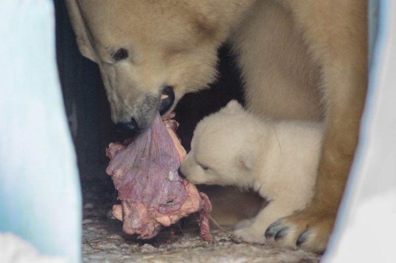 Интересно, что в дикой природе беременные белые медведицы впадают в спячку на 50-80 дней. Детёныш рождается именно в это время, и, как правило, первые три месяца мама с новорождённым проводят в укрытии.
