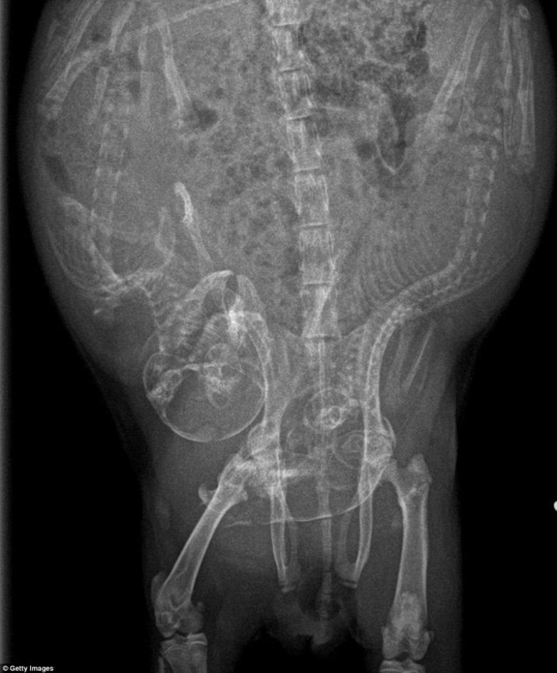 Беременность животных на рентген-снимках