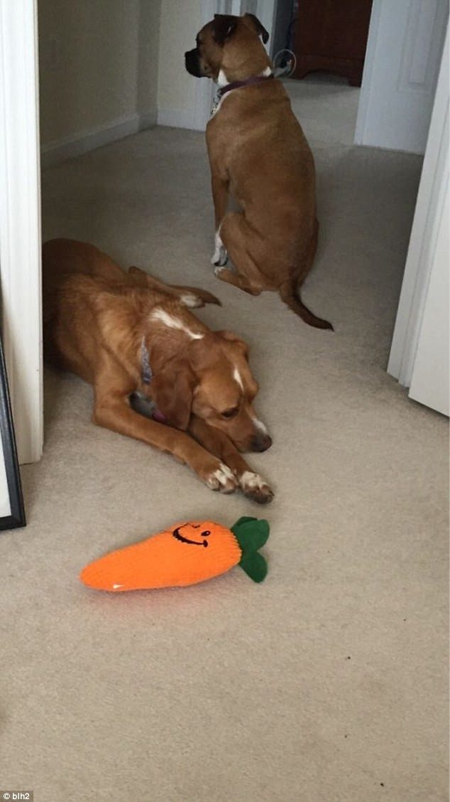 Этим псам запрещают заходить в кабинет, когда хозяин работает. они послушались, но закинули в кабинет морковку — с надеждой, что хозяин проникнется состраданием и поиграет с ними.