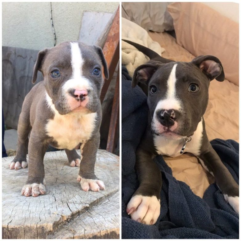 Интернет узнал о Мике и Лило, когда их хозяйка Элли Стоун решила запустить в твиттере флешмоб «От щенка — к собаке» и для затравки выслала фото своих любимцев, предложив всем делиться снимками собак «до» и «после».