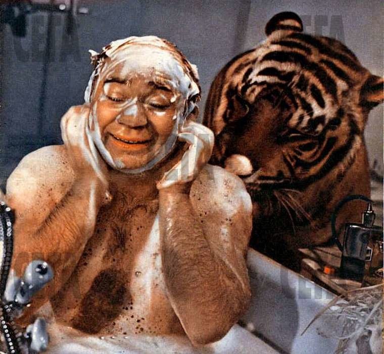 2. Бенгальский тигр Пурш сыграл роль своего хищного собрата в комедии «ПОЛОСАТЫЙ РЕЙС». Любимец дрессировщицы Маргариты Назаровой, Пурш справился с ролью отлично, несмотря на то, что большие кошки плохо переносят суету съёмочной площадки. Для Пурша это была уже третья роль в кино: он уже блистал в фильмах «ОПАСНЫЕ ТРОПЫ» и «УКРОТИТЕЛЬНИЦА ТИГРОВ».