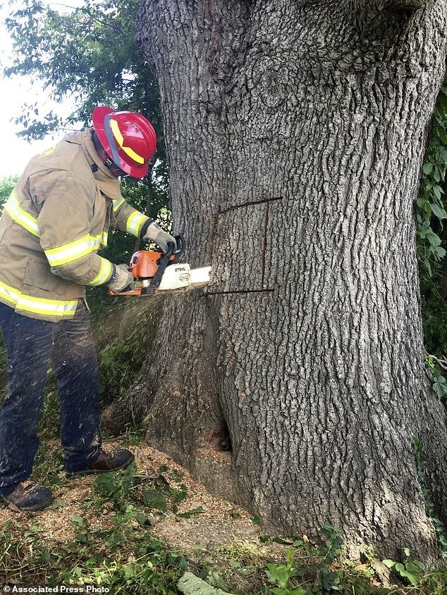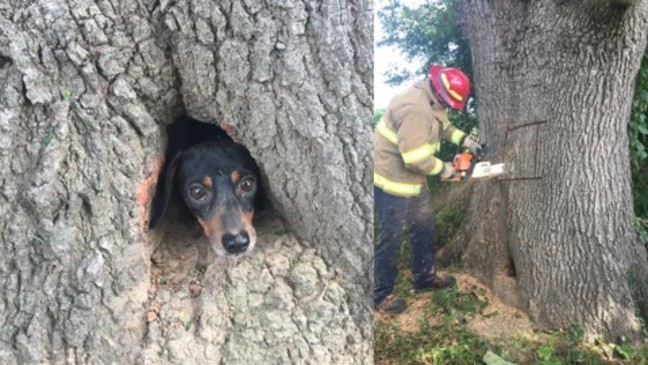 Все началось, когда косившие у кладбища траву рабочие услышали отчаянный лай и скулеж. Прибывшие на вызов полицейские обнаружили небольшое дупло в дереве, откуда торчала голова с перепуганными глазенкам. Рядом была разрытая нора сурка и собачьи следы — очевидно, что маленький охотник сломя голову полез за добычей, добрался до трухлявой сердцевины дерева и застрял, когда из любопытства высунул голову в дупло. Работа для пожарных с их топорами и серьезным инструментом.